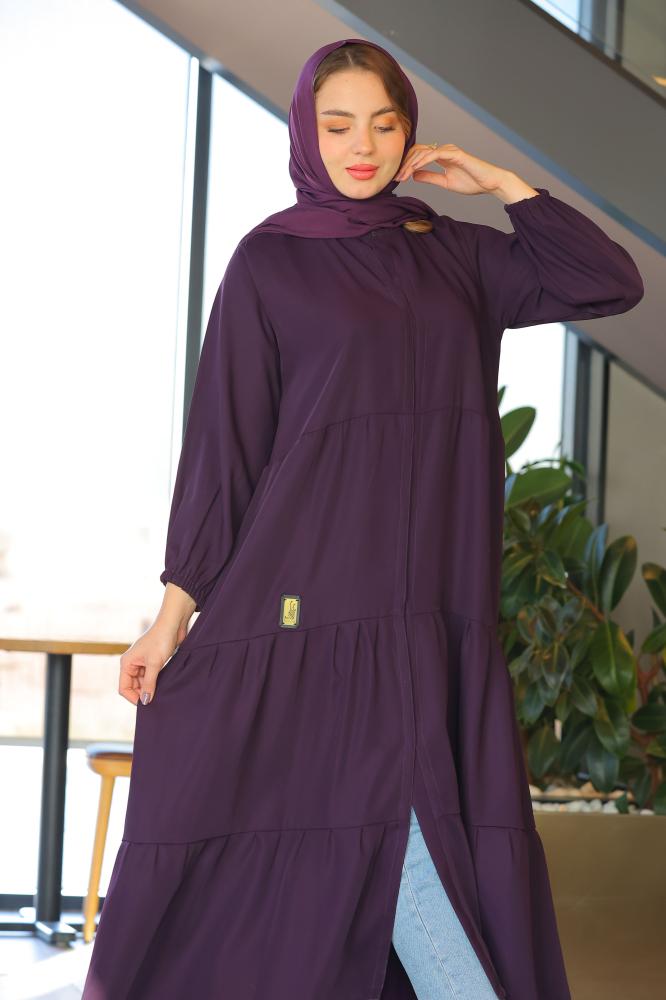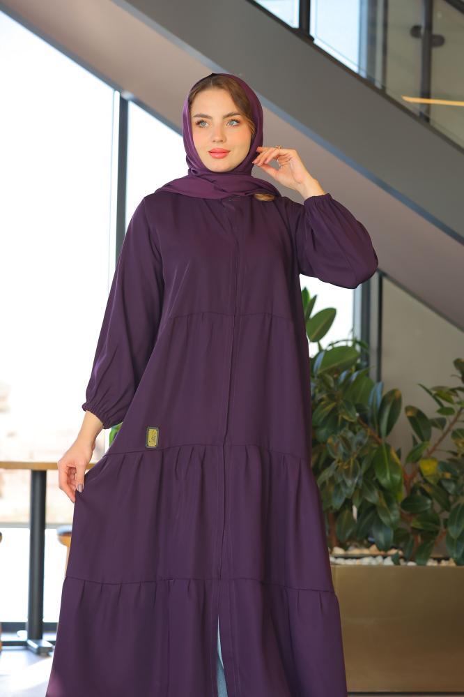 عباية كلوش طبقات مستوحاة من زهرة الليلك الانثويه بلونها الفخم وطبقاتها المنسدله برقه .